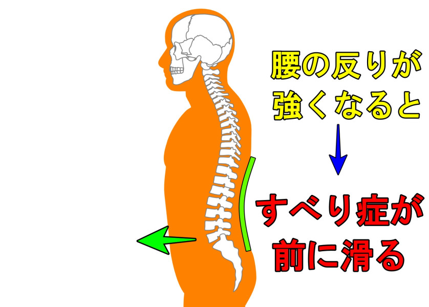 腰を反ると腰椎は前に動く力が加わりますから、繰り返されると徐々に腰椎が前に滑ってしまいます。