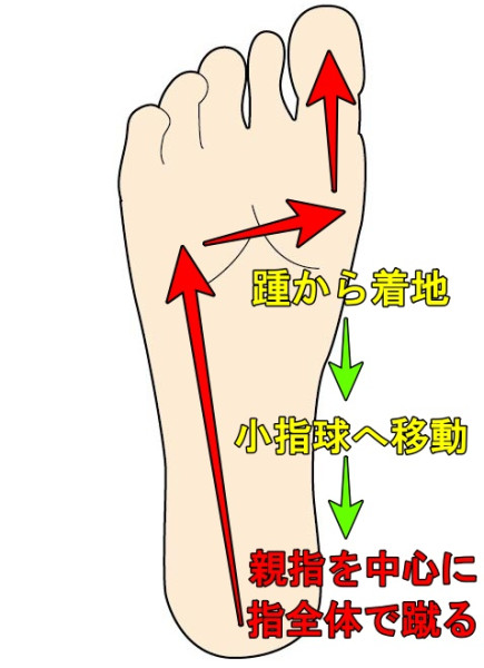 ④ 親指を中心に足の裏全体で蹴る