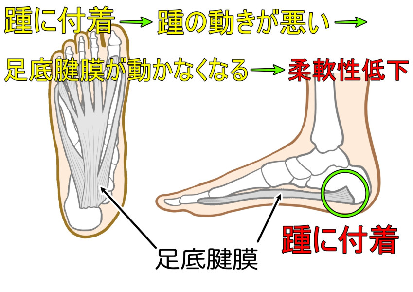 1. 偏平足や使いすぎによって足底腱膜の柔軟性が低下する