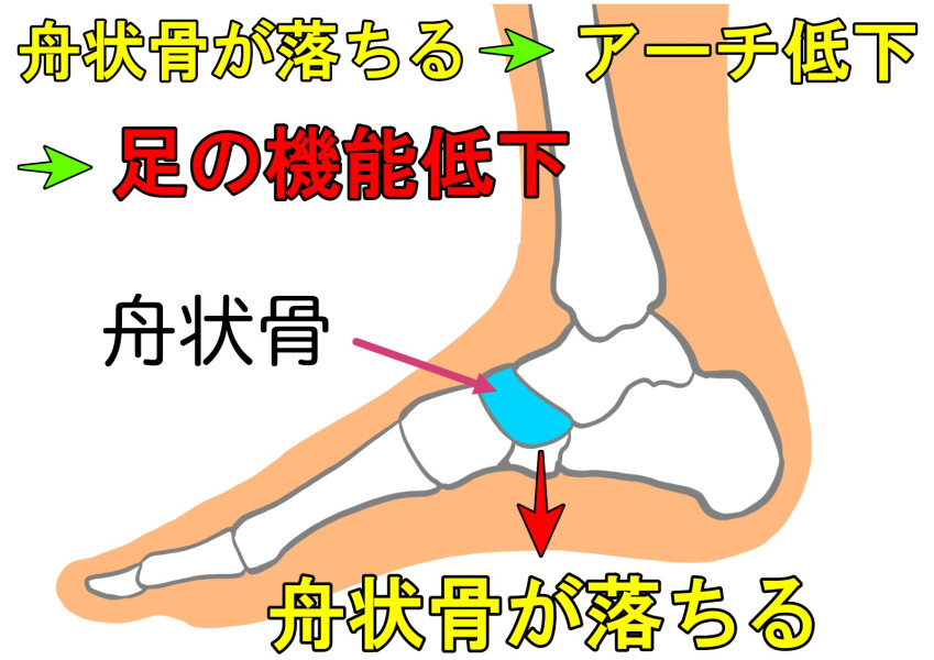 このようになります。これが偏平足になると正常な重心移動ができなくなります。重心移動は意識して行うものではなく、自動的に行われます。