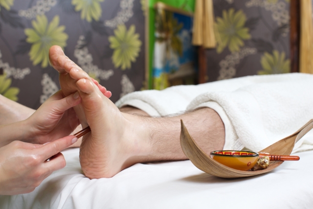 硬いところでの作業は足底に負担がかかります。長時間の作業は足底腱膜に何度も衝撃を与えてしまい、柔軟性の低下につながります。例えば、歩くことが多い立ち仕事に加え、靴が合わない、冷えやすいという環境は足底腱膜炎になりやすいです。硬いところで作業が多い方には青竹踏みをお勧めしています。青竹踏みは足底の柔軟性を向上させるのに有効ですが、炎症期の場合は青竹を踏むことをお勧めできず、安静にすることをお勧めします。