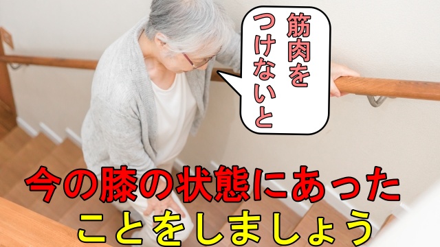 初期の頃は階段や正座のときだけ痛いので「歩いて筋肉をつけてください」と言われて頑張って歩く方がいます。しかし、変形が進みO脚がひどくなって歩くのさえ困難な状態になると「頑張って歩いて筋肉をつけてください」と言われても歩くのが億劫でその気になれなくなっていきます。