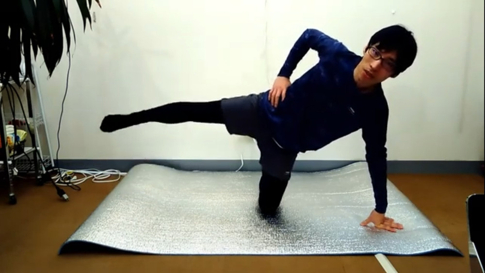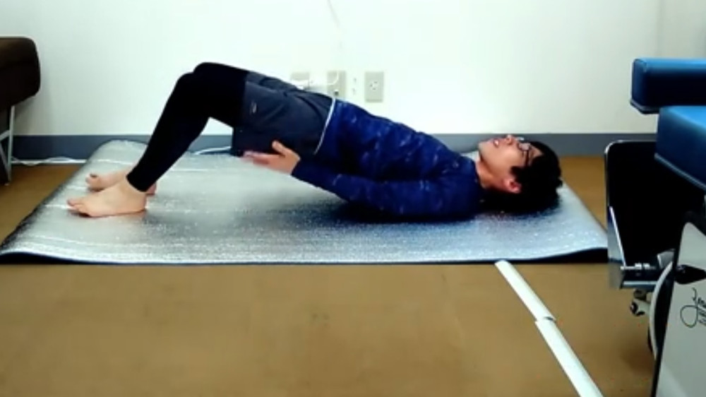 中殿筋や大殿筋を鍛えるエクササイズです。お尻の筋肉も非常に大切で、鍛えることで膝の負担を軽減させることができます。