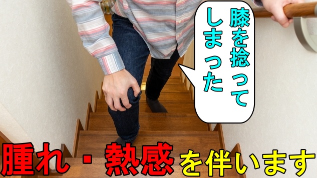 本来の可動域以上に膝が動いてしまった場合に膝の組織が損傷されます。レントゲンでは異常を確認できないので、その際に膝関節捻挫と言われるケースが多いです。膝関節捻挫は腫れ、熱感などの基本的な炎症症状があります。