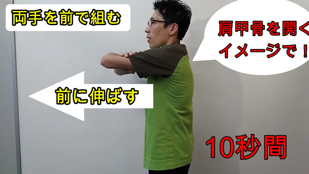 2.肩甲骨を開くイメージで前に伸ばす