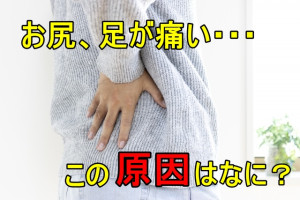 お尻から足にかけて痛みを感じる女性。梨状筋症候群による坐骨神経痛のサイン。
